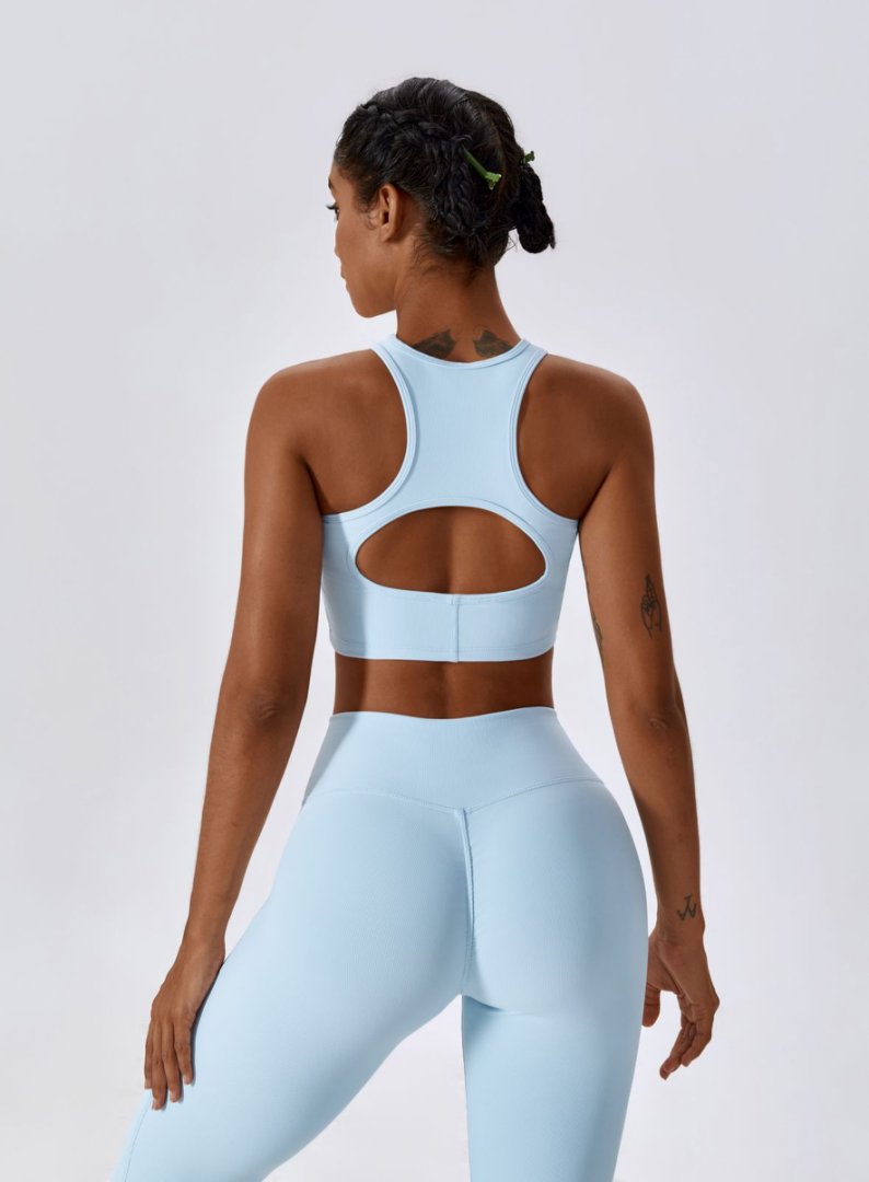 The LunaFlare Set brings together sculpted support and studio elegance. With a high-neck crop top and curve-enhancing flared pants, this duo is perfect for workouts, errands, or wherever your day flows.